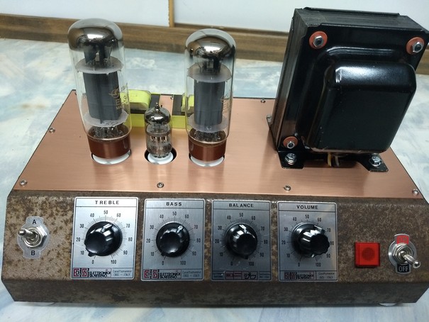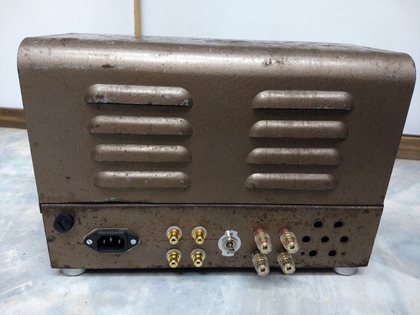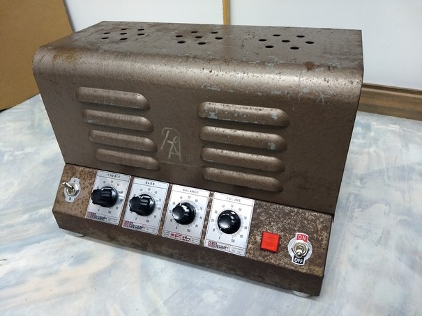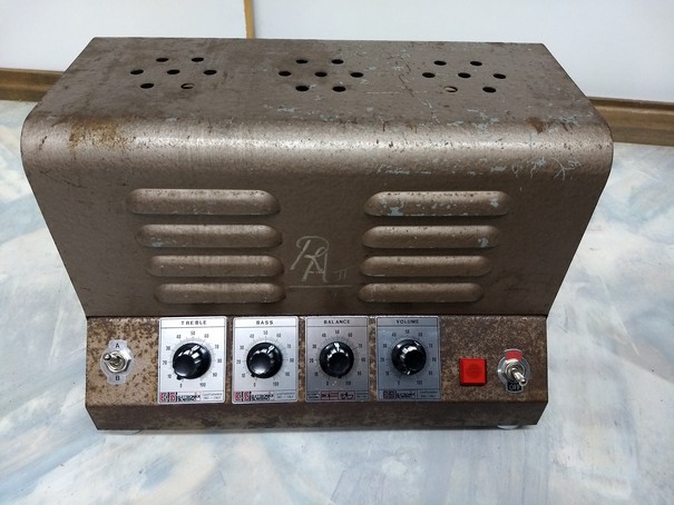 Gestart met een oude behuizing van een buizenversterker uit de jaren '50. Volledig leeg gemaakt en van nul af aan gestart.
