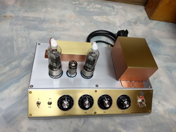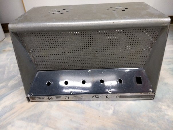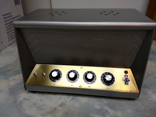 Gestart met een oude behuizing van een buizenversterker uit de jaren '50. Volledig leeg gemaakt en van nul af aan gestart.