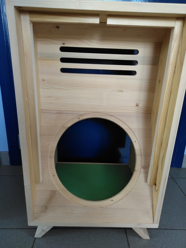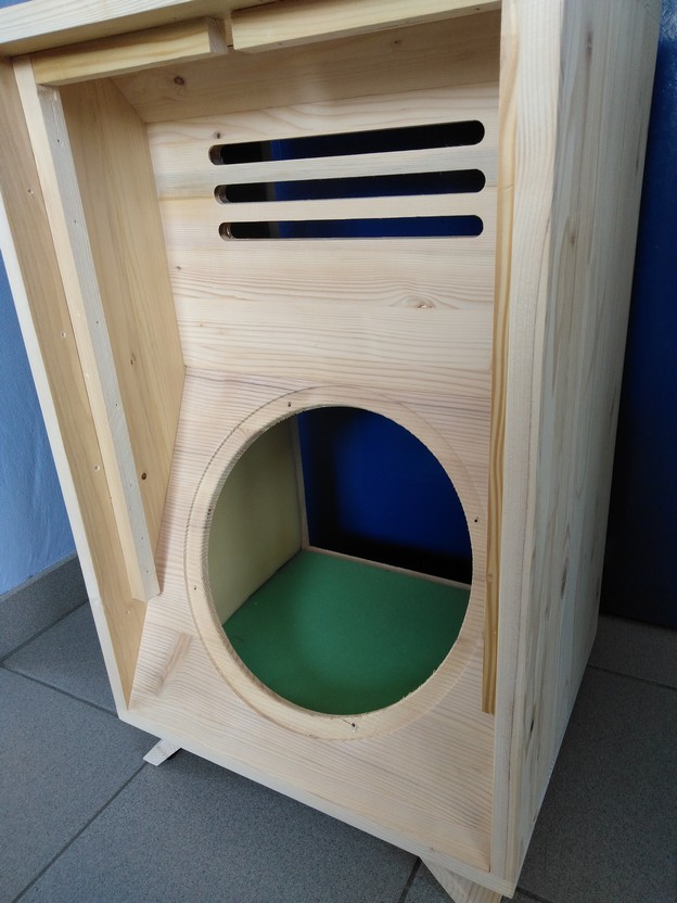 - De klankholte in het kastontwerp bevat een luchtzuil, vergelijkbaar met de luchtzuil in een aan één kant gesloten pijp. De lucht in deze pijp resoneert op een frequentie met een golflengte van vier keer de lengte van de zuil en ook op de oneven harmonischen van deze frequentie. Bij andere frequenties resoneert de lucht in de pijp niet.