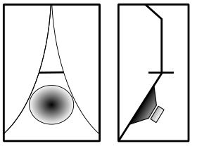 - Als de inkeping tot 2/3 van de pijp wordt gemaakt en naar het open uiteinde exponentieel toenemend in breedte, dan zal het resultaat zijn, dat de lucht op alle frequenties gelijkmatig resoneert, dat wil zeggen over de hele akoestische bandbreedte.